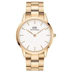Daniel Wellington ladies time only watch aus der iconic link collection. Uhr aus poliertem 316l edelstahl in rosafarben. Das gehäuse hat einen durchmesser von 40 mm. Der quandrant ist weiß mit stabindizes und zwei händen. Das armband ist aus rosafarbenem netz. Riemenlänge: 133-204 mm. Uhr mit quarzwerk und 3atm wasserbeständigkeit. Die referenz ist dw00100343