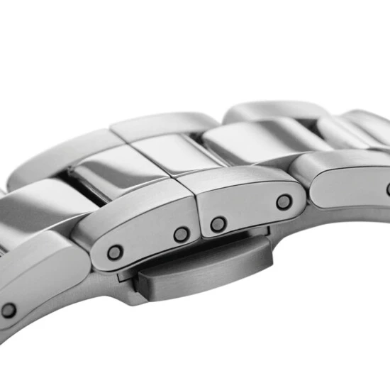 Hinter der Iconic Link, einer modernen Interpretation eines klassischen Entwurfs, stecken viele Jahre Designarbeit und akribische Handwerkskunst. Die Iconic Link ziert ein s Metallarmband mit dreiteiligen Gliedern; jedes Segment besteht aus sich verjüngenden, individuell gefertigten Edelstahlteilen – so entsteht ein nahtloser Übergang vom Gehäuse bis zum Verschluss.