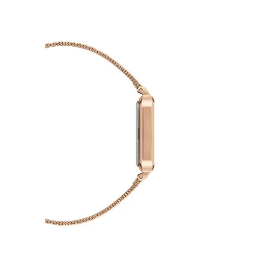 Women’s only time watch von Daniel Wellington aus der quadro collection. Uhr mit gehäuse aus edelstahl mit abmessungen von 20 x 26 mm, dicke: 6 mm. Uhr mit armband aus mesh-netz in roségold. Riemenbreite: 10 mm. Gurtlänge: 135-195 mm. Das zifferblatt ist eierschalenweiß. Uhr mit japanischem quarzwerk. Die wasserbeständigkeit beträgt 3 atm. Die referenz ist dw00100431