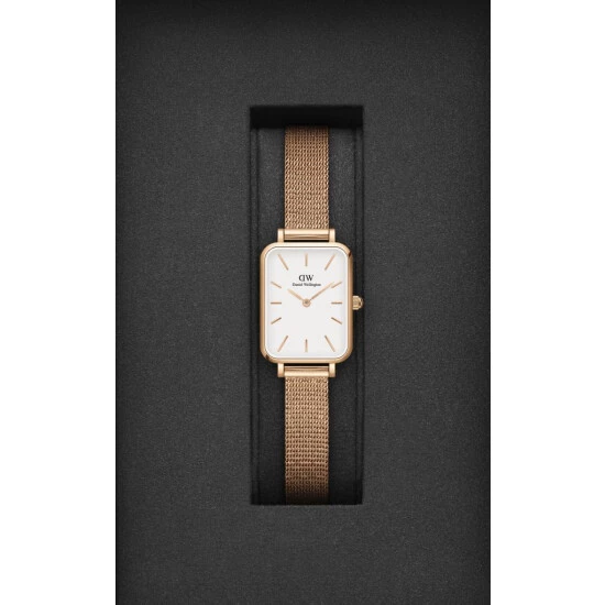 Die Quadro ist die erste Uhr von Daniel Wellington mit eckigem Zifferblatt. Hergestellt aus poliertem Edelstahl und erhältlich in einer raffinierten Roségoldbeschichtung oder einem lebendigen Silberfinish. Entscheide dich zwischen einem weißen, schwarzen oder grün gemusterten Zifferblatt und einer Auswahl an gepressten Mesh- oder gepressten Lederbändern. Werte deinen Look auf.