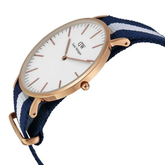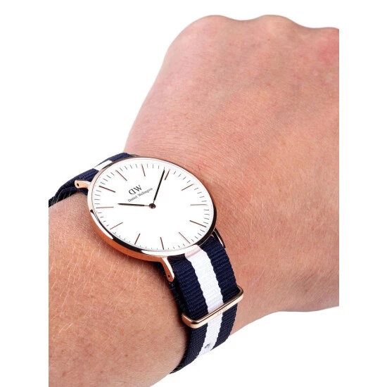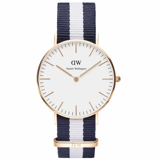 Sehen Daniel Wellington sammlung von klassischen. Sehen sie glasgow style mit gehäuse aus round 6 mm dicke stahl rose gold größe von 40 mm e mineralglas. Der bewegung japanische quarz. Das zifferblatt ist eierschale weiß, sind indizes sticks. Der riemen ist gestreifte multicolor-weinlese-blau-und weiß fabric-nylon mit nylonschnalle mit logo. Jede uhr Daniel Wellington hat das riemen austauschbar mit anderen farben, sie kaufen das strap teile getrennt, immer einen neuen blick auf ihre uhr-spiel. Die gurte compatible sie messen halb brust. Nachrichten in september 2015, ref: 0104dw