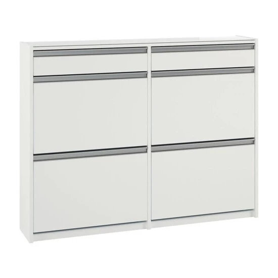 Dieser Schuhschrank macht mit seinem schlichten Design einen guten Eindruck in Ihrem Flur. Der Schuhschrank ist weiß und aus MDF. Der Schuhschrank ist ein echtes Highlight im Flur und fällt auf. Sie werden diesen Schuhschrank lieben!