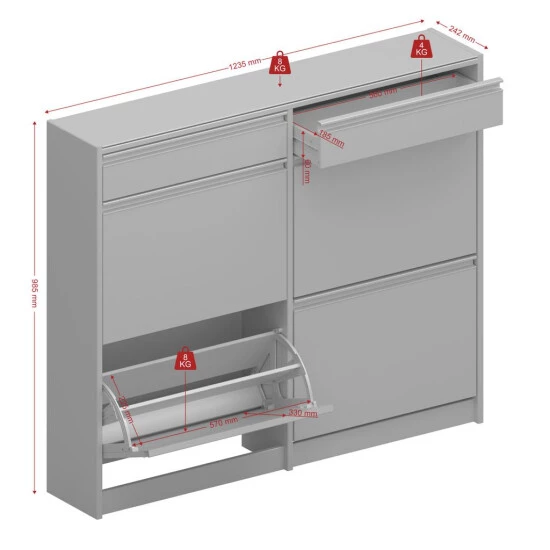 Skyline – Schuhschrank mit 2 Schubladen und 2+2 Klappen