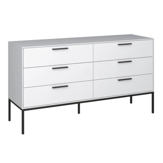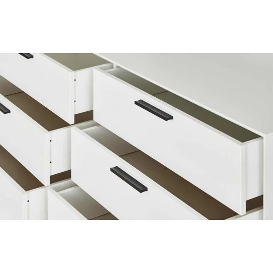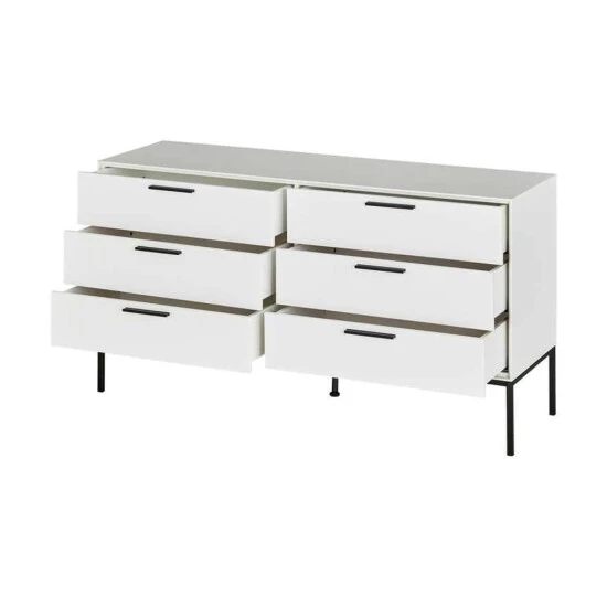 Diese Kommode macht mit seinem schlichten Design einen guten Eindruck in Ihrem Schlafzimmer. Die Kommode ist weiß und aus MDF. Die Kommode ist ein echtes Highlight im Schlafzimmer und fällt auf. Sie werden diese Kommode lieben!