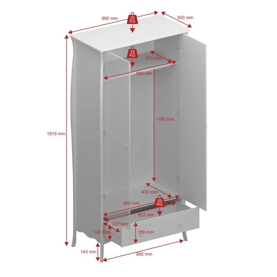 Dieser Kleiderschrank macht mit seinem schlichten Design einen guten Eindruck in Ihrem Schlafzimmer. In der Schublade und hinter den zwei Türen ist jede Menge Platz. Aus MDF ist dieser Kleiderschrank ein echtes Highlight im Schlafzimmer und fällt auf. Sie werden diesen Kleiderschrank lieben.