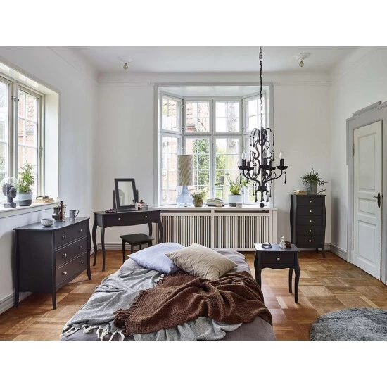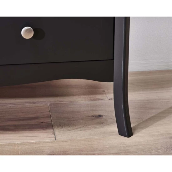Steens Kommode Baroque 015 schwarz, 80 x 96 cm Mit hübsch geschwungenen Formen präsentiert sich die Kommode Baroque der Marke Steens. Sie ist insgesamt nostalgisch gestaltet und fügt sich besonders gut in jedes klassische Ambiente ein. Aber auch in der modernen Einrichtung vermag sie tolle Akzente zu setzen. Die knopfartigen Metallgriffe unterstreichen den romantischen Charakter der Anrichte im Landhaus-Stil. Produktinformationen: Maße: Gesamthöhe: 80 cm Gesamtbreite: 96 cm Gesamttiefe: 45 cm Material: Material: MDF Material Griffe: Metall Farbe: schwarz Lieferung: Ware wird zerlegt geliefert. Markeninformation: Die Steens Group wächst seit 50 Jahren stetig weiter. Es wird nur hochwertiges Holz aus den skandinavischen Wäldern genutzt