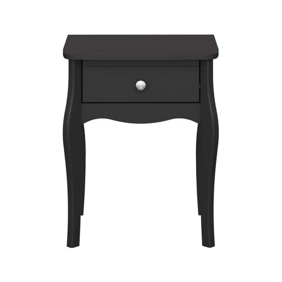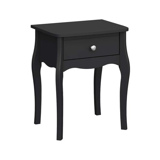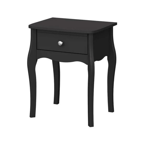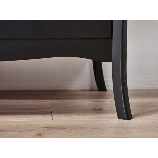 Steens Nachttisch Baroque 001 schwarz, 55 x 45 cm Der Nachttisch Baroque passt zu modernen, aber auch romantisch verspielten Bettgestellen. Baroque selbst vereint einen stylischen, aber gleichzeitig geschwungenen Look – vor allem an den Beinen. Passend dazu: das zeitlose Schwarz. Neben der Stellfläche auf der Abdeckplatte verfügt die Kommode über eine praktische Schublade. Produktinformationen: Maße: Gesamthöhe: 55 cm Gesamtbreite: 45 cm Gesamttiefe: 35 cm Material: Material: MDF Material Griffe: Metall Farbe: braun Lieferung: Ware wird zerlegt geliefert. Markeninformation: Die Steens Group wächst seit 50 Jahren stetig weiter. Es wird nur hochwertiges Holz aus den skandinavischen Wäldern genutzt