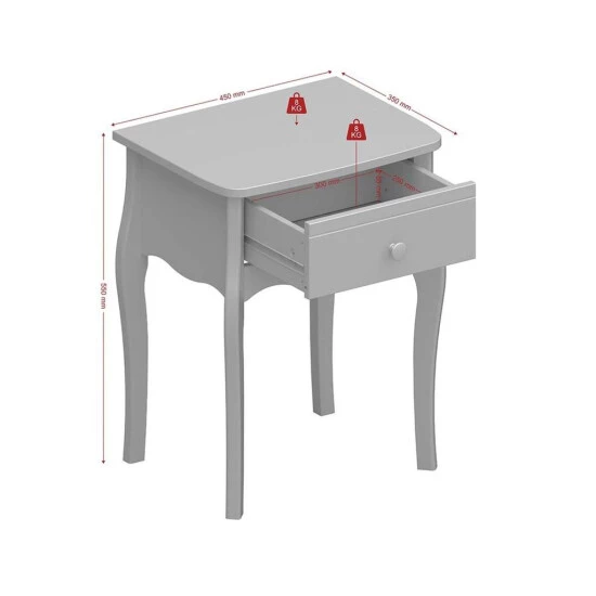 Dieser Nachttisch macht mit seinem schlichten Design einen guten Eindruck in Ihrem Schlafzimmer. In der Schublade ist jede Menge Platz. Aus MDF ist dieser Nachttisch ein echtes Highlight im Schlafzimmer und fällt auf. Sie werden diesen Nachttisch lieben.