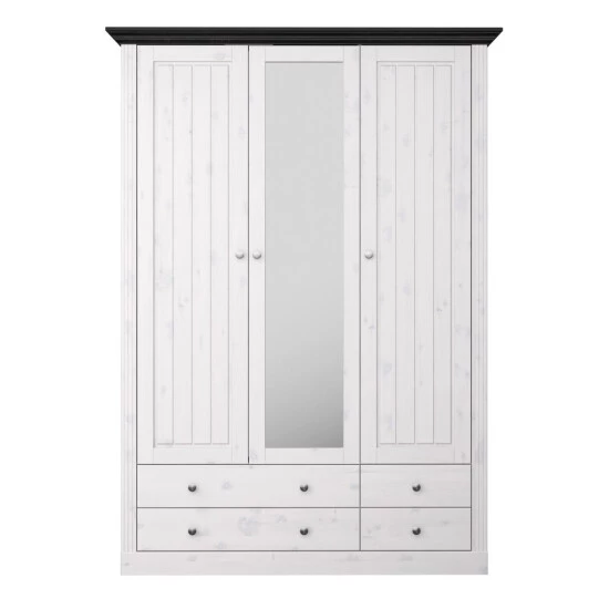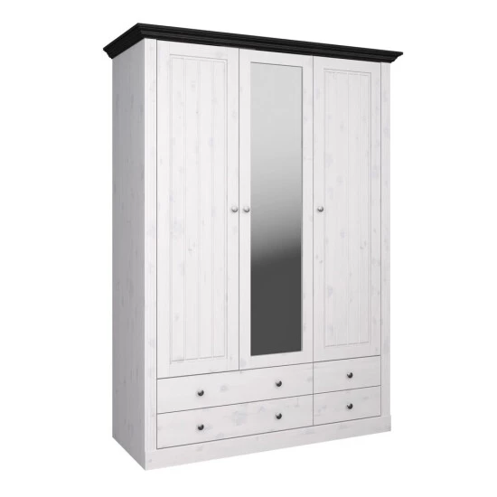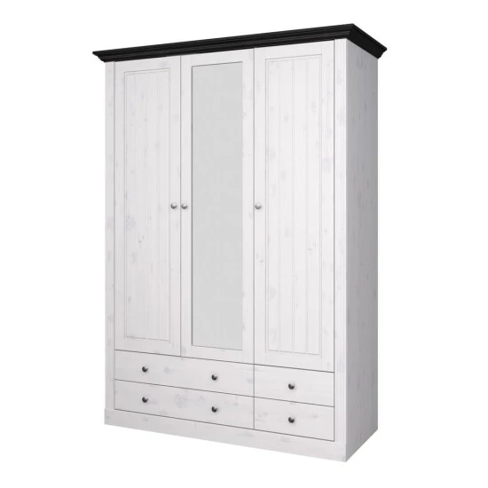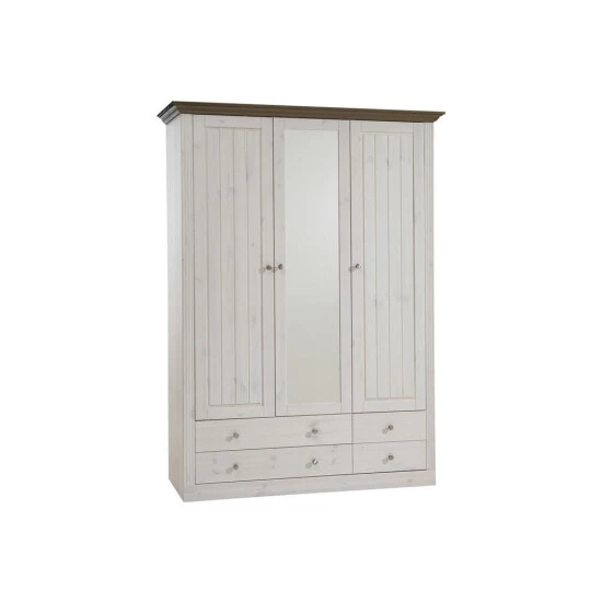 Kleiderschrank Monaco Kiefer White-Wash, kolonialfarben abgesetzt, 3-türig