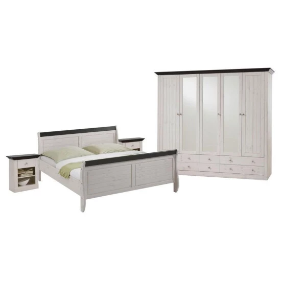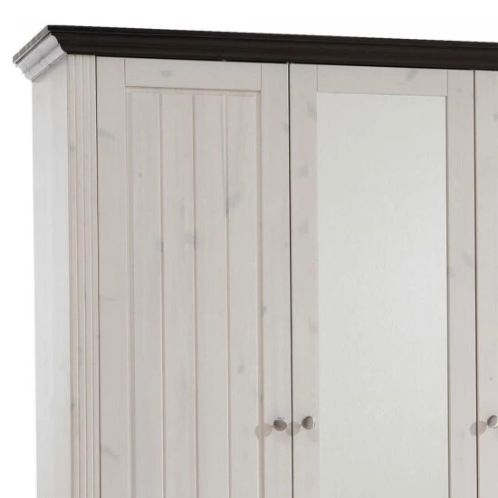 Kleiderschrank Monaco in Kiefer massiv White-Wash, kolonialfarben abgesetzt.