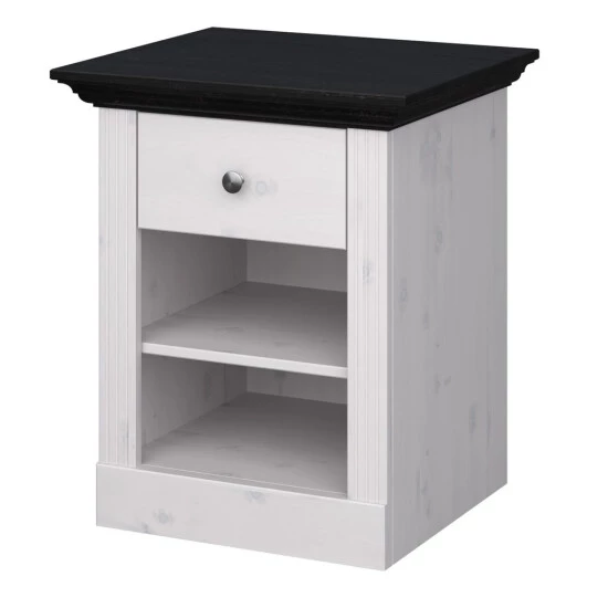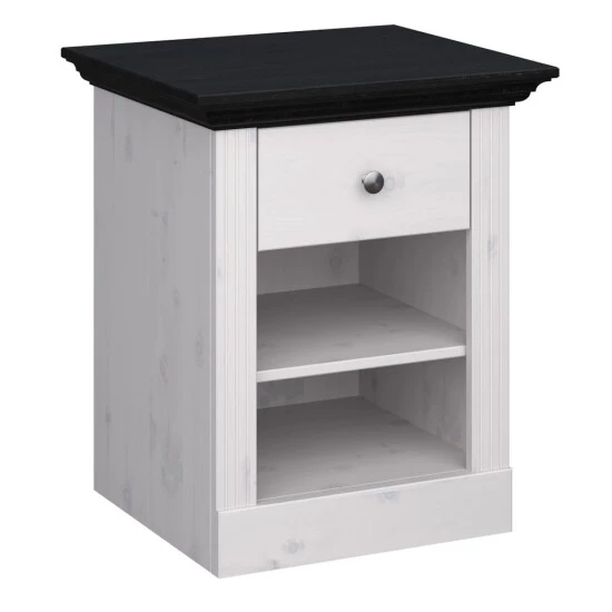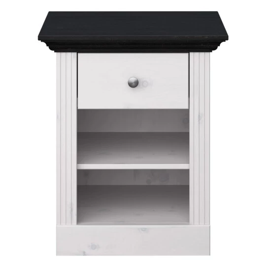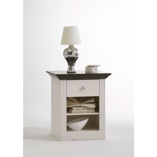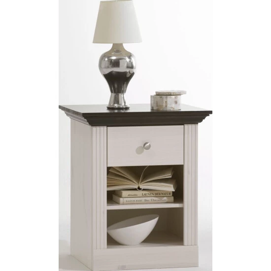 Nachtkonsole mit 1 Schublade ins Kiefer, Weiss/Kolonial gebeizt, stabil