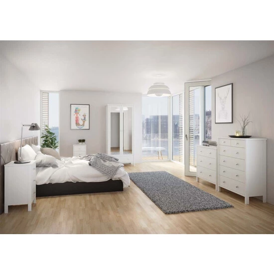 Produkte der Serie: 2x Nachtkommode, 4x Kommode, Sideboard, 2x Tisch, Kleiderschrank, 2x Bücherregal, Schuhkommode, Konsolentisch und 2x Kinderbett