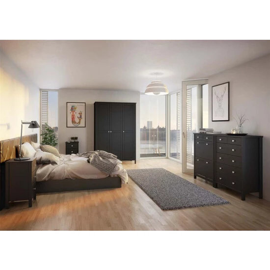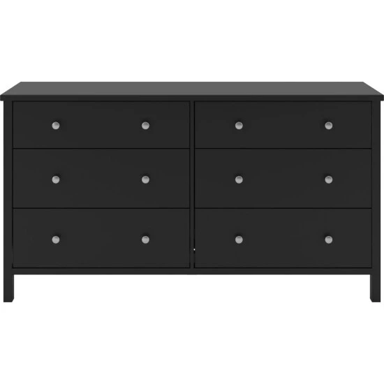 Diese Kommode macht mit seinem schlichten Design einen guten Eindruck in Ihrem Schlafzimmer. Die Kommode ist schwarz und aus MDF. Die Kommode ist ein echtes Highlight im Schlafzimmer und fällt auf. Sie werden diese Kommode lieben!