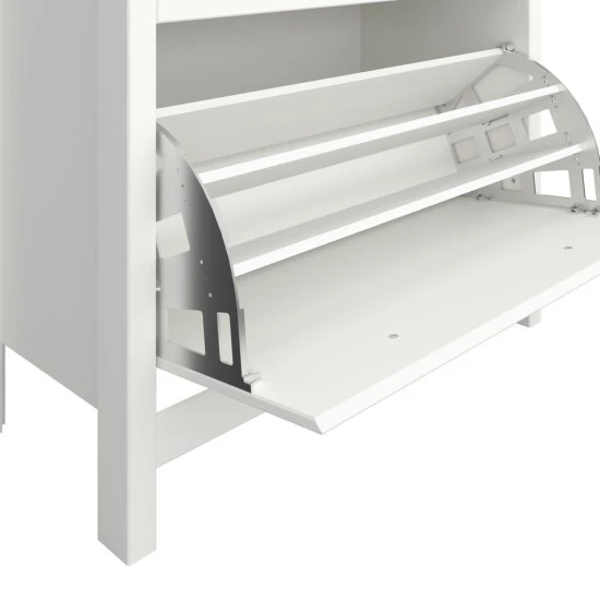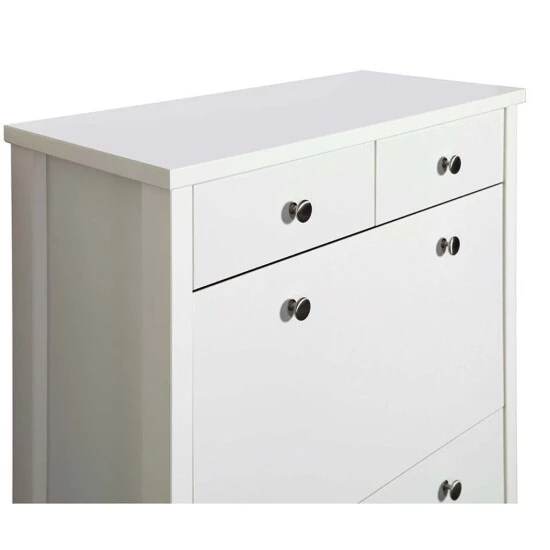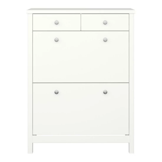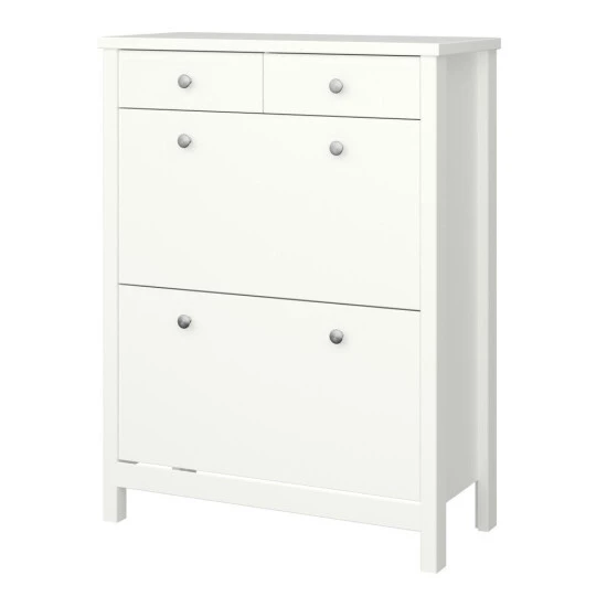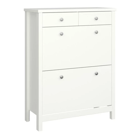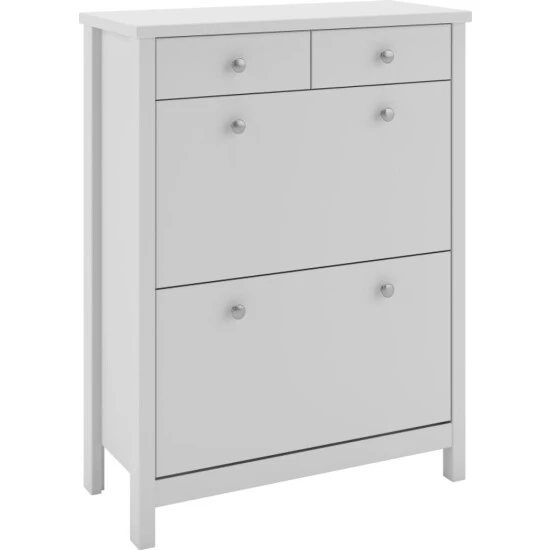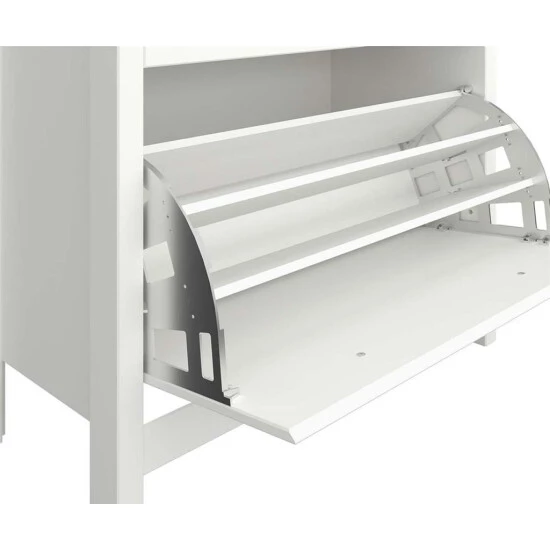 Diese Schuhkommode macht mit seinem schlichten Design einen guten Eindruck in Ihrem Flur. Die Kommode ist weiß und aus MDF. Die Schuhkommode ist ein echtes Highlight im Flur und fällt auf. Sie werden diese Schuhkommode lieben!
